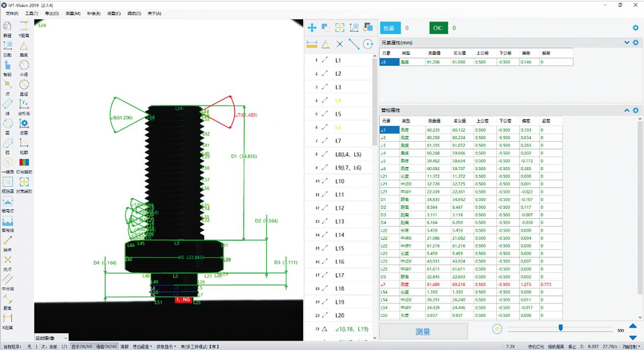 大视野影像闪测、高精度、全自动,开创快速测量新理念,通过将远心成像与智能图像处理软件的完美结合,任何繁琐的测量任务,都变得无比简单。只需把工件放置到有效测量区域,然后轻轻按一键,所有二维尺寸瞬间 完成测量、判定结果、自动保存数据,测量精准,可实现工件多个位置、多个产品同时测量,一体式结构加装防 震台设计,保证仪器的刚性及稳定性。